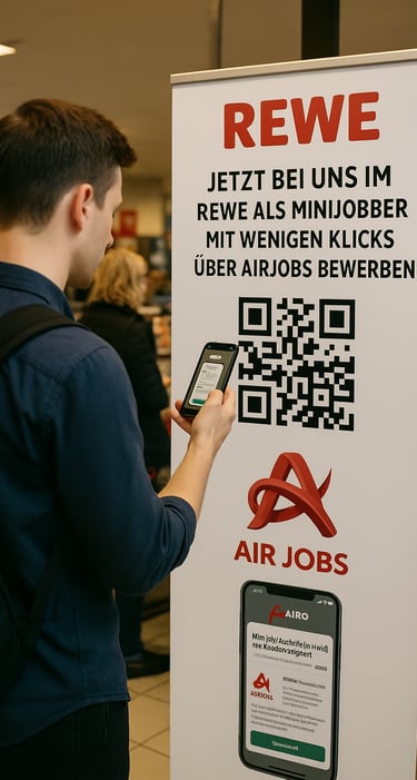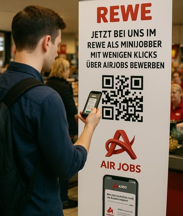 Einfach die QR-Code Vorlage in eurem Markt aufhängen und mehr Bewerbungen für offene Stellen generieren